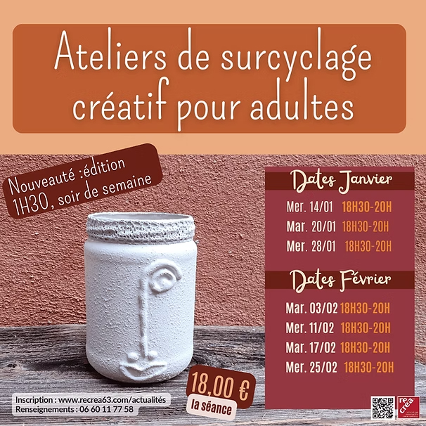 Nouveauté : ateliers créatifs adulte, séances d’1H30 18,00 €