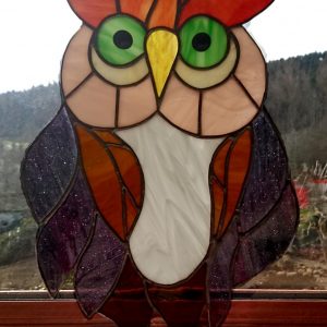 Mais le vitrail est aussi un art profane. Dès 1870, Louis Comfort Tiffany s’intéresse au travail du verre et crée un nouveau mode de sertissage du verre. Plus simple à mettre en œuvre, cette méthode permet de créer de petits objets comme des bijoux. C’est cette méthode que Marie Paule utilise à l’atelier situé au cœur du village au pied de l’église Saint Blaise.